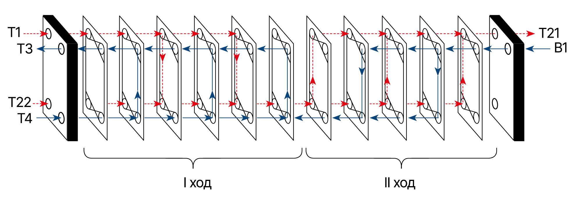 | Тип пластины | DN присоединения, мм | Одноходовой | Многоходовой | ||