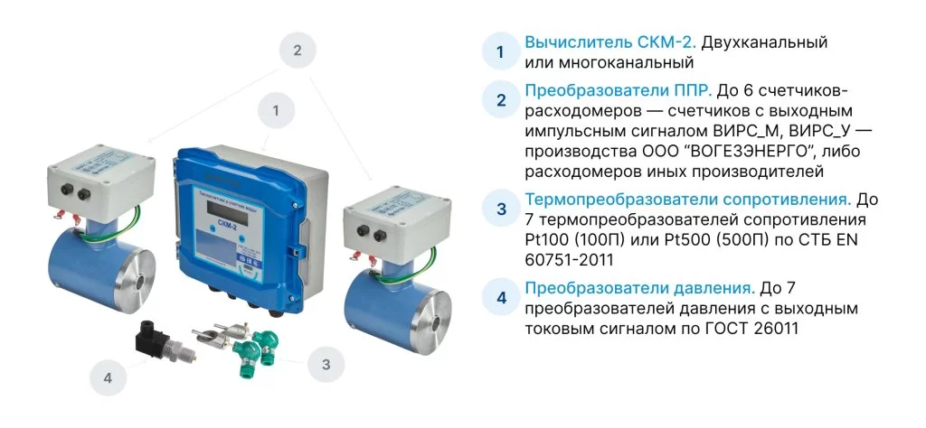 Производство ООО «Вогезэнерго», г. Минск, Республика Беларусь (BY), зарегистрированы в государственном реестре средств измерений № РБ 03 10 4364 21 и допущены к применению в Республике Беларусь. Теплосчетчики и счетчики воды СКМ-2 соответствуют требованиям ТУ BY 101138220.007-2010, ГОСТ Р 51649, ГОСТ EN1434, ГОСТ ISO 4064. Теплосчетчики СКМ-2 включены в государственный реестр средств измерений РФ, № 84819-22 от 03.03.2022г. и допущены к применению на территории Российской Федерации.